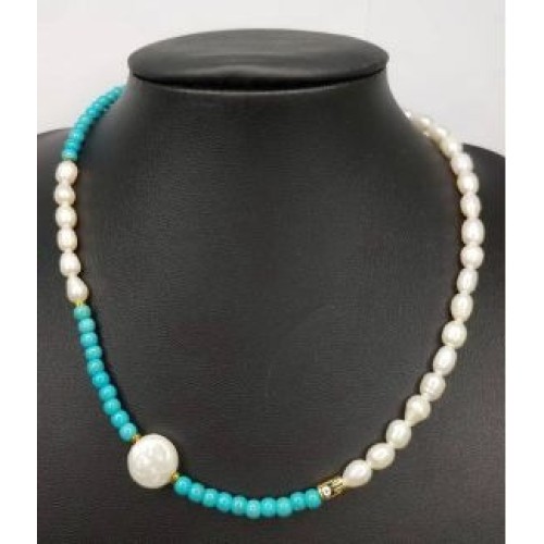 Κολιέ με μαργαριτάρια 6-7mm και πέτρα τιρκουάζ 4mm..