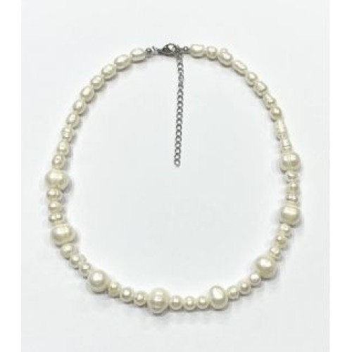 Κολιέ με πέτρα #6, μαργαριτάρια 6-7mm, αιματίτη και ατσάλινο κούμπωμα..