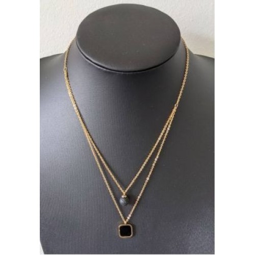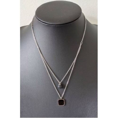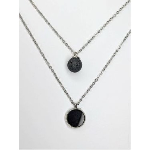 Κολιέ με διπλή αλυσίδα από ατσάλι και πέτρα λάβα  ..