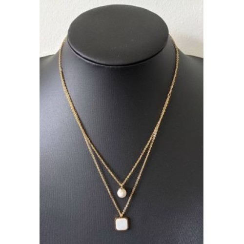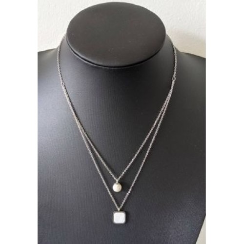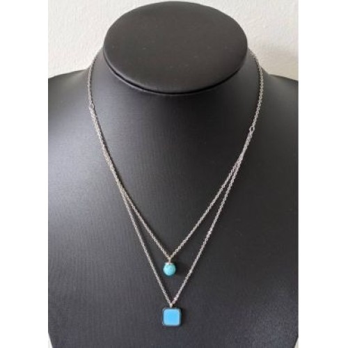 Κολιέ με διπλή αλυσίδα από ατσάλι και πέτρα χαολίτης στρογγυλό..