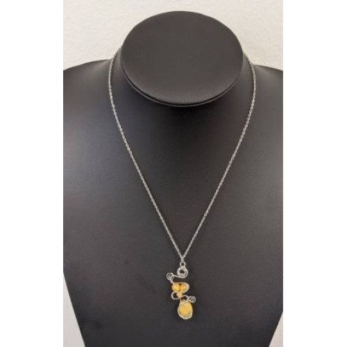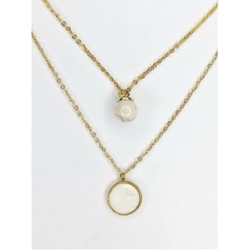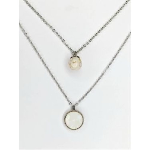 Κολιέ με διπλή αλυσίδα από ατσάλι και πέτρα χαολίτης στρογγυλό..