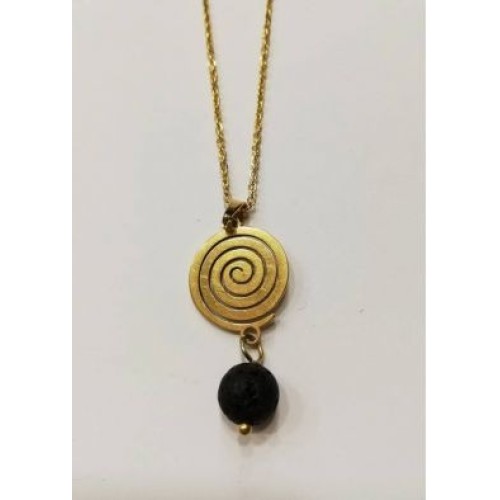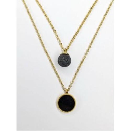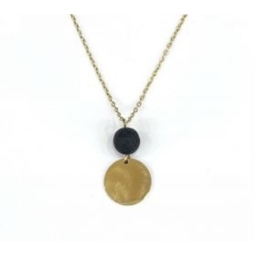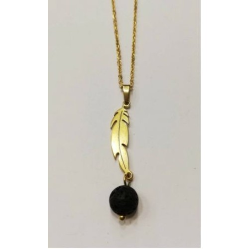 Κολιέ με ατσάλι και μοτίφ με πέτρα λάβα..