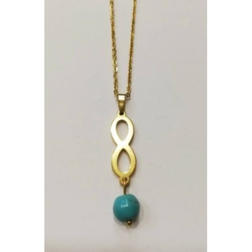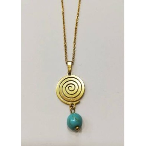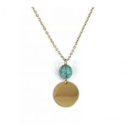 Kostibas 1013-804XD, Κολιέ, Μοτίφ, Ατσάλι, Πέτρα, Λάβα, Χρυσό/Τιρκουάζ