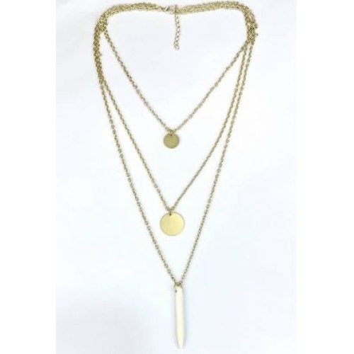 Κολιέ με τριπλή αλυσίδα από ατσάλι και μοτίφ πέτρα εκρού..