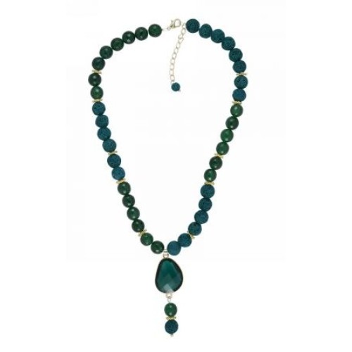 Kostibas 1013-805XD, Κολιέ, Μοτίφ, Ατσάλι, Πέτρα, Λάβα, Χρυσό/Τιρκουάζ