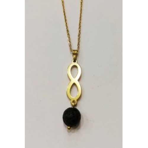 Κολιέ από ατσάλι με μοτίφ πέτρα λάβα 10mm ..