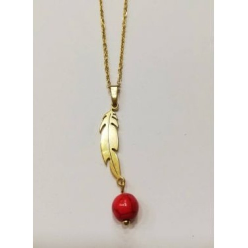 Kostibas 1013-804XE, Κολιέ, Μοτίφ, Ατσάλι, Πέτρα, Λάβα, Χρυσό/Κόκκινο