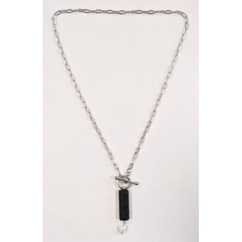 Κολιέ με πέτρα λάβα κύλινδρο και μαργαριτάρι ..