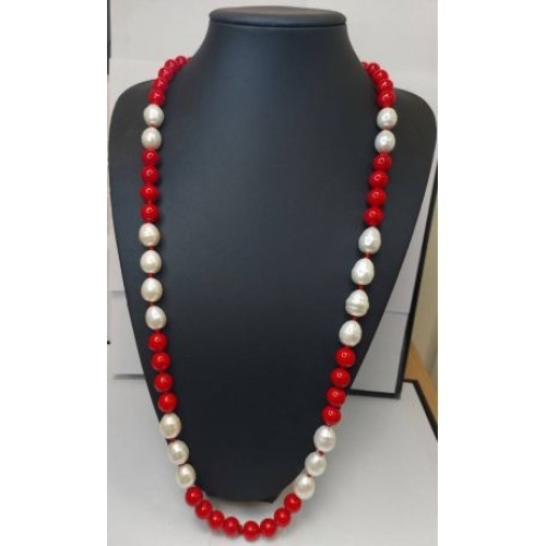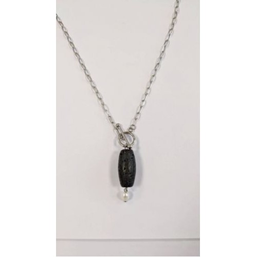 Κολιέ με πέτρα λάβα κύλινδρο με μαργαριτάρι..