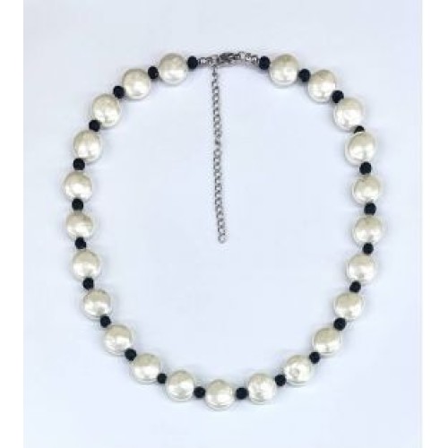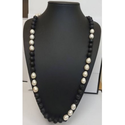 Kostibas 1014-781A, Κολιέ, Πέτρα, Λάβα, Ασπρόμαυρο