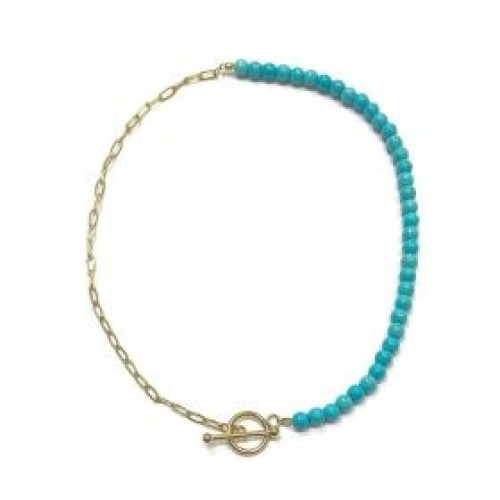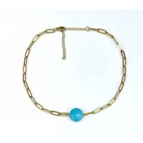 Kostibas 1013-772XT, Κολιέ, Ατσάλι, Πέτρα, Λάβα, Χρυσό/Τιρκουάζ