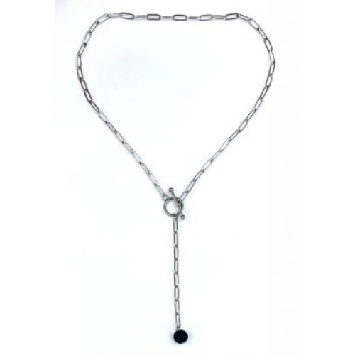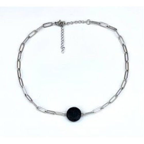 Κολιέ με ατσάλι και πέτρα λάβα Διαστάσεις: 45 x 9cm..