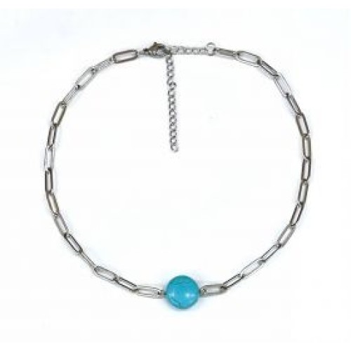 Kostibas 1013-772AT, Κολιέ, Ατσάλι, Πέτρα, Λάβα, Ασημί/Τιρκουάζ