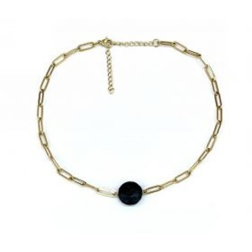 Kostibas 1013-772XA, Κολιέ, Ατσάλι, Πέτρα, Λάβα, Χρυσό/Μαύρο