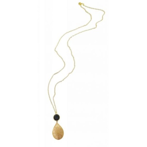Κολιέ με στρογγυλή πέτρα λάβα και μοτίφ δάκρυ..