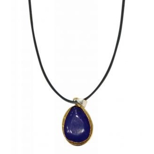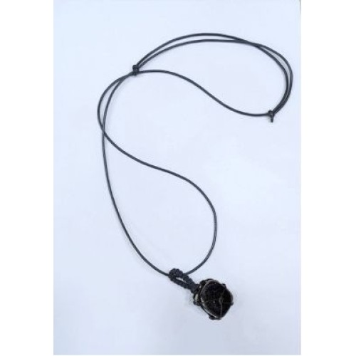 Μενταγιόν σε καουτσούκ με πέτρα πολυγωνικό ρόμβο και ασημί περίβλημα Διαστάσεις: 41 x 9cm..