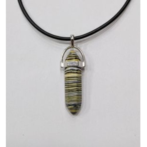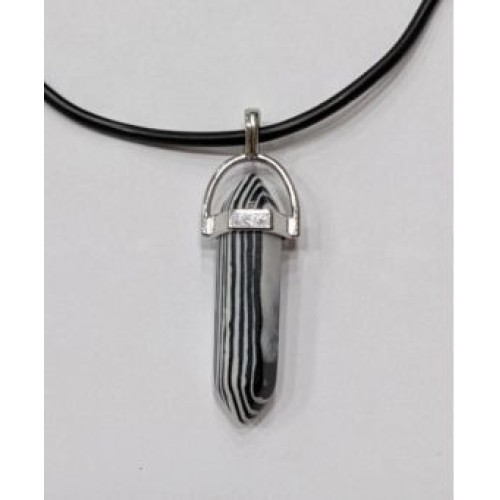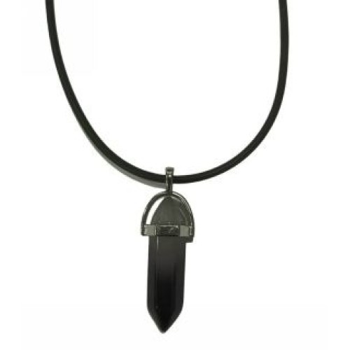 Μενταγιόν σε καουτσούκ με πέτρα πολυγωνικό ρόμβο και ασημί περίβλημα Διαστάσεις: 41 x 9cm..