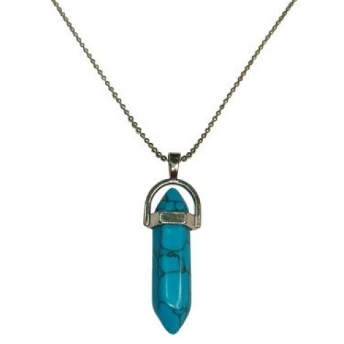 Μενταγιόν σε αλυσίδα με πέτρα πολυγωνικό ρόμβο και ασημί περίβλημα Διαστάσεις: 41 x 9cm..
