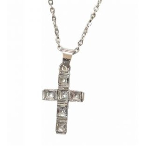 Μενταγιόν σταυρός stainless steel με στρας και αλυσίδα ..