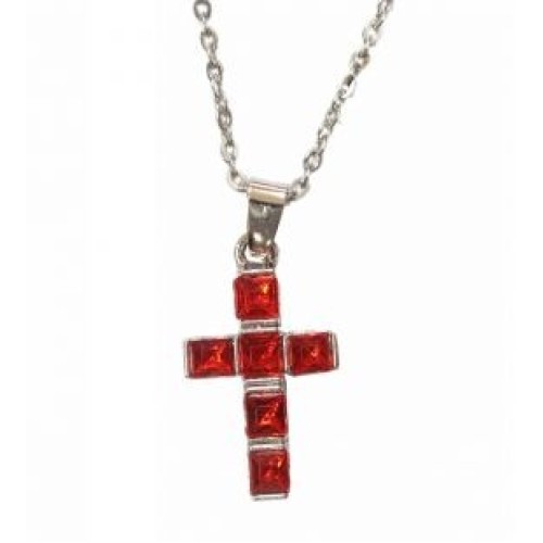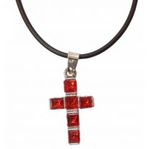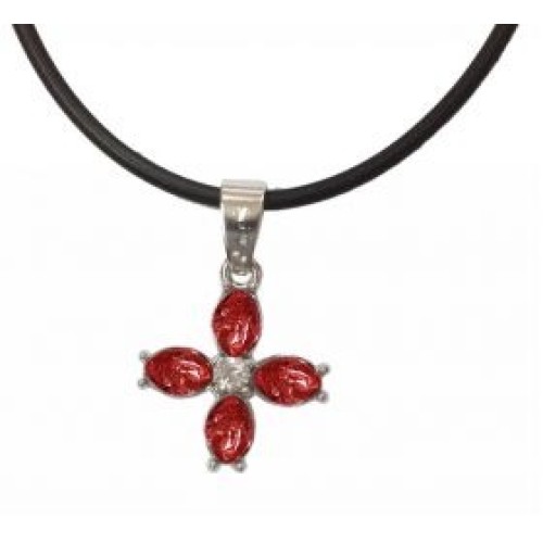 Kostibas 1321-140KU, Σταυρός, Stainless Steel, Ατσάλι, Στρας, Καουτσούκ, Κόκκινο