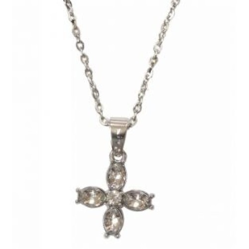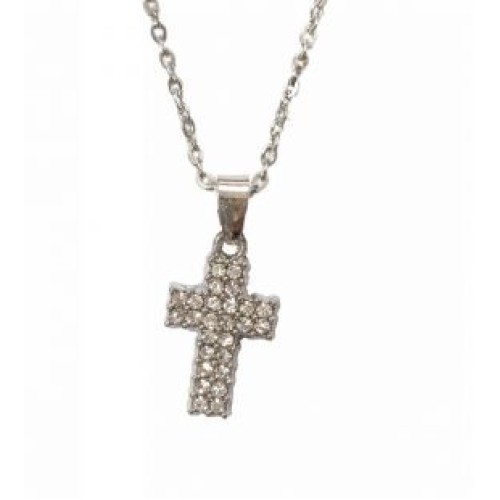Μενταγιόν σταυρός stainless steel με στρας και αλυσίδα στυλ φακαντόρο..