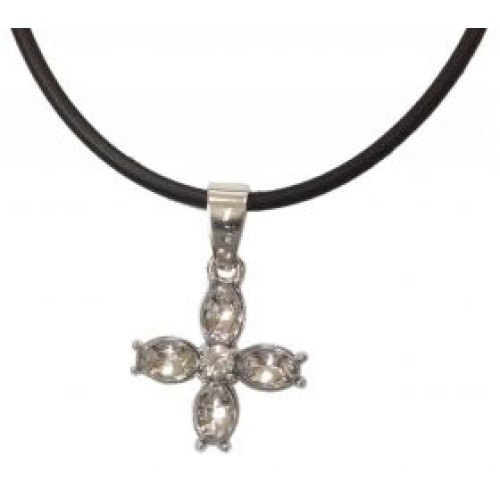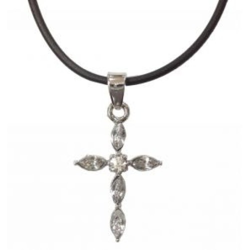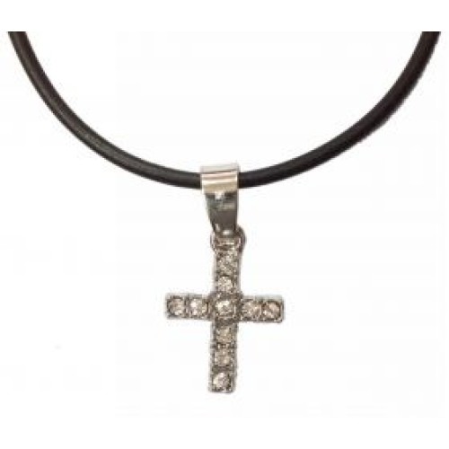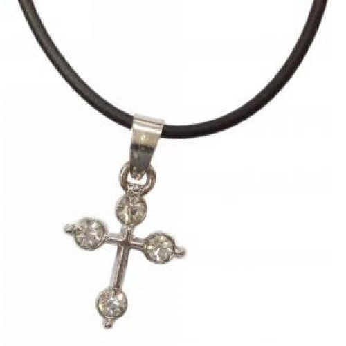 Μενταγιόν σταυρός stainless steel με στρας και καουτσούκ..
