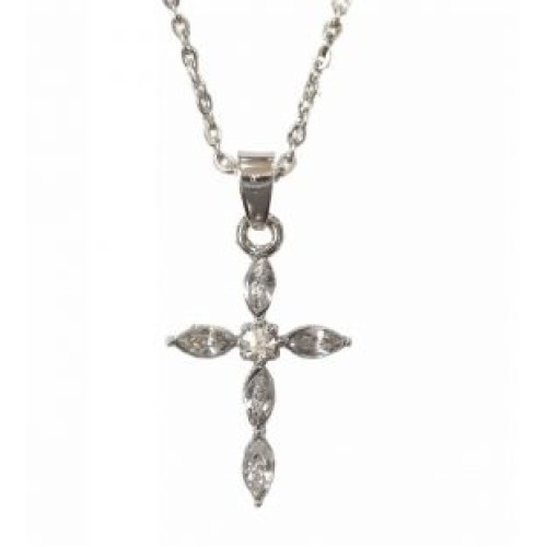 Kostibas 1321-144AL, Σταυρός, Stainless Steel, Ατσάλι, Στρας, Ασημί