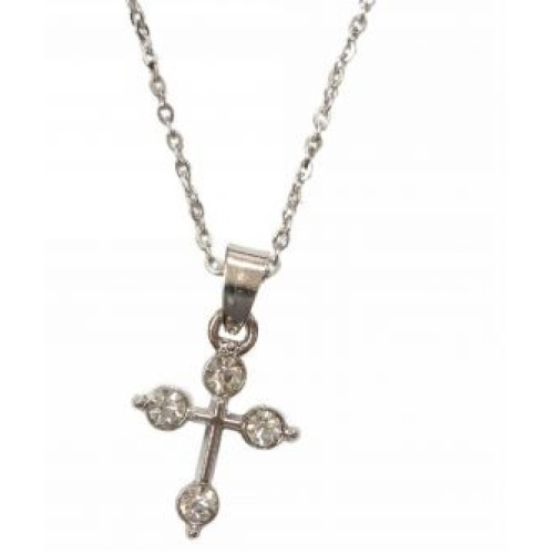 Kostibas 1321-141AL, Σταυρός, Stainless Steel, Ατσάλι, Στρας, Ασημί