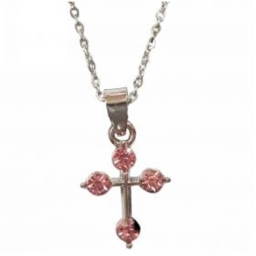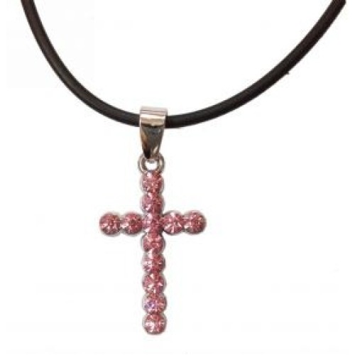 Kostibas 1321-147KR, Σταυρός, Stainless Steel, Ατσάλι, Στρας, Καουτσούκ, Ασημί/Ροζ