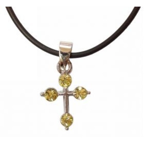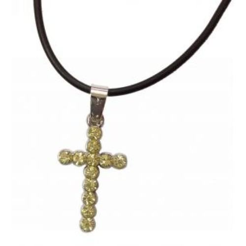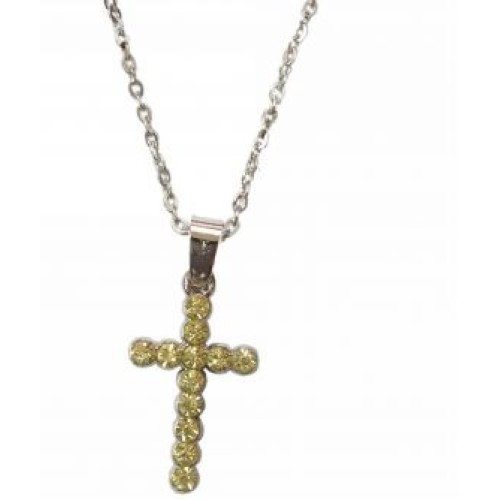 Kostibas 1321-142KY, Σταυρός, Stainless Steel, Ατσάλι, Στρας, Καουτσούκ, Κίτρινο