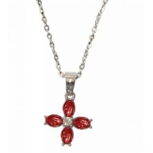 Kostibas 1321-140AU, Σταυρός, Stainless Steel, Ατσάλι, Στρας, Ασημί/Κόκκινο