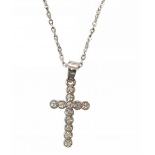 Kostibas 1321-146AL, Σταυρός, Stainless Steel, Ατσάλι, Στρας, Ασημί
