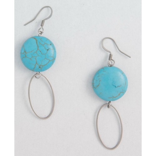 Σκουλαρίκια Ατσάλι Ατσάλι Με οβάλ ατσάλινο μοτίφ + στρόγγυλη πλακέ μοτίφ τυρκουάζ..