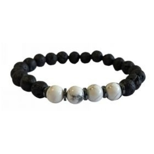 Kostibas 1550-882LM, Βραχιόλι Ανδρικό, Πέτρα, Λάβα, Μαύρο/Λευκό