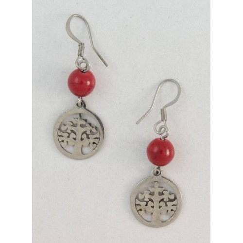 Σκουλαρίκια Ατσάλι Ατσάλι Με ατσάλινο μοτίφ δέντρο ζωής + μοτίφ κόκκινο ..