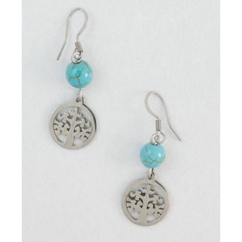 Σκουλαρίκια Ατσάλι Ατσάλι Με ατσάλινο μοτίφ δέντρο ζωής + μοτίφ τιρκουάζ ..