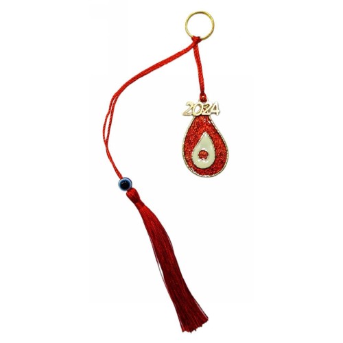 Χριστουγεννιάτικο γούρι 2024 Ματάκι Κόκκινο από σμάλτο με φούντα και ματάκι ακρυλικό! Η συσκευασία..