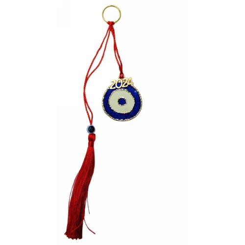 Χριστουγεννιάτικο γούρι 2024 Ματάκι μπλε από σμάλτο με φούντα και ματάκι ακρυλικό! Η συσκευασία περ..