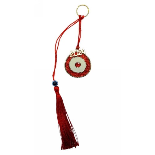 Χριστουγεννιάτικο γούρι 2024 Ματάκι κόκκινο από σμάλτο με φούντα και ματάκι ακρυλικό! Η συσκευασία ..