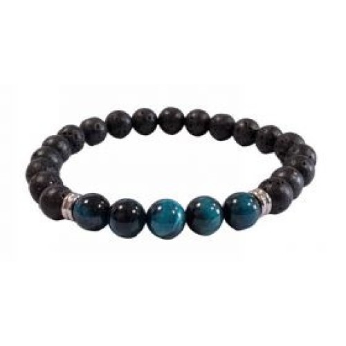 Βραχιόλι αντρικό με πέτρα λάβα #8, tiger eye petrol #8 και αιματίτη..
