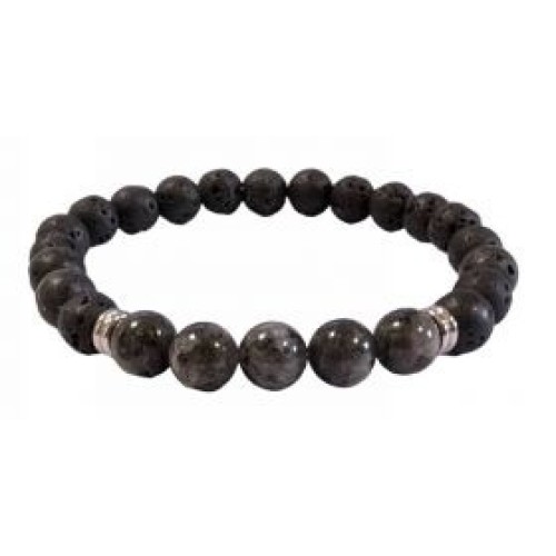 Βραχιόλι αντρικό με πέτρα λάβα 8#, larvikite 8# και αιματίτες..