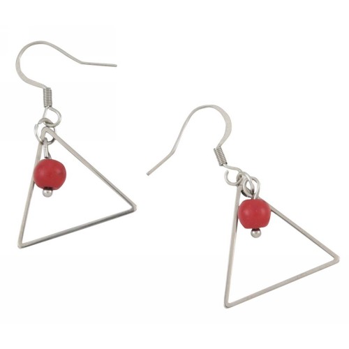 Σκουλαρίκια Με μοτίφ Ατσάλι Σε τρίγωνο σχήμα με κόκκινο εντός..