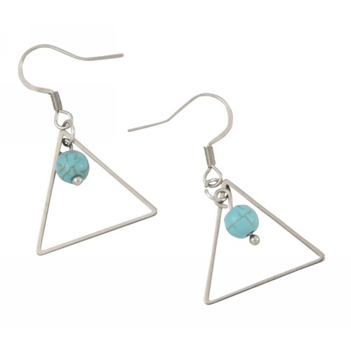 Σκουλαρίκια Με μοτίφ Ατσάλι Σε τρίγωνο σχήμα με τιρκουάζ εντός..