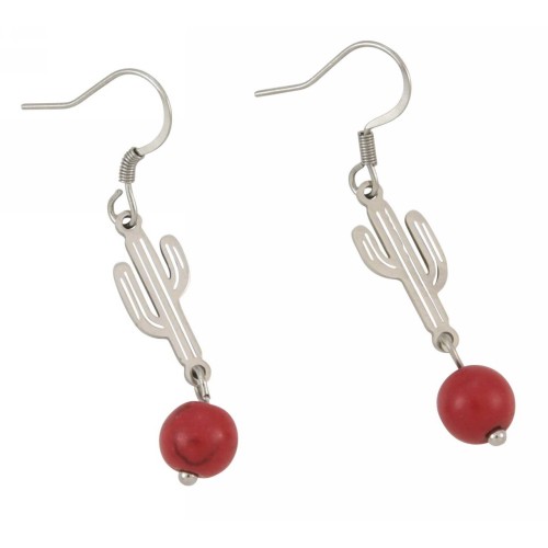Σκουλαρίκια Με μοτίφ Ατσάλι Με μοτίφ κάκτο+κόκκινο ..