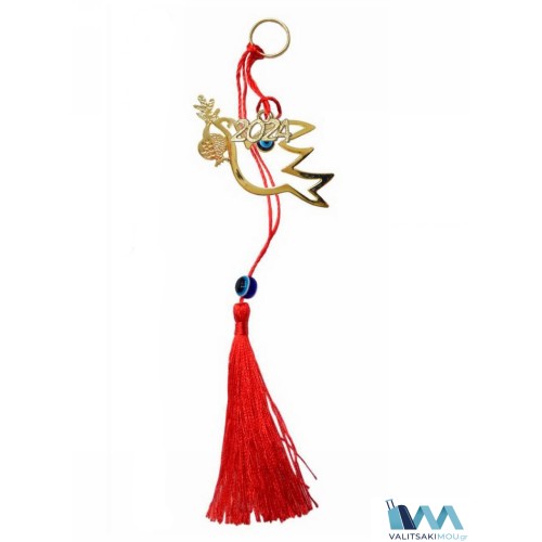 Γούρια Χριστουγεννιάτικα από μέταλλο Περιστέρι με ρόδι και φούντα,η οποία έχει ματάκι ακρυλικό. ΠΡΟ..