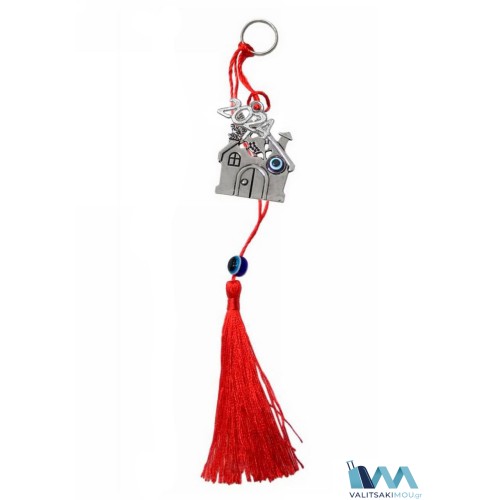 Γούρια Χριστουγεννιάτικα από μέταλλο Σπιτάκι με μάτι και φούντα,η οποία έχει ματάκι ακρυλικό. ΠΡΟΣΟ..