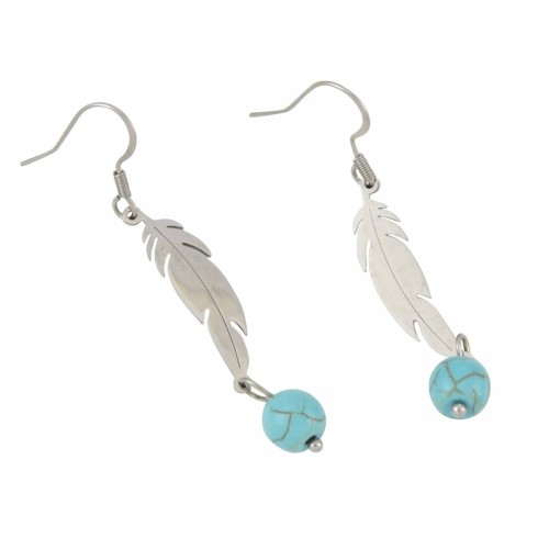 Σκουλαρίκια Με μοτίφ Ατσάλι Με μοτίφ φύλλο+τιρκουάζ ..