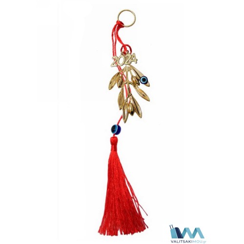 Χριστουγεννιάτικο γούρι 2024 Κλαδί ελιάς με ματάκι & φούντα, η οποία έχει ματάκι ακρυλικό! Προσοχή ..