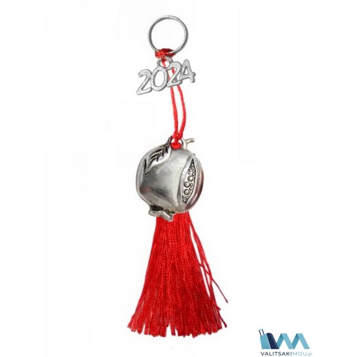 Γούρι Χριστουγεννιάτικο 2024, από μέταλλο, Ρόδι μικρό με φούντα. Προσοχή Μόνο διακοσμητικά, περιέχ..