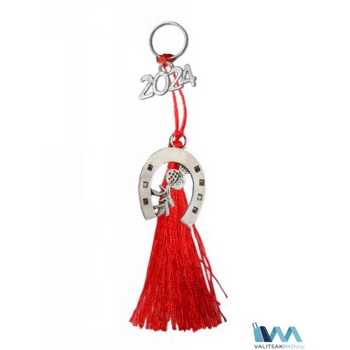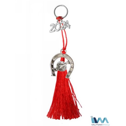 Γούρι Χριστουγεννιάτικο 2024, από μέταλλο, Πέταλο μικρό με ρόδι & διακοσμητική φούντα. Προσοχή Μόν..